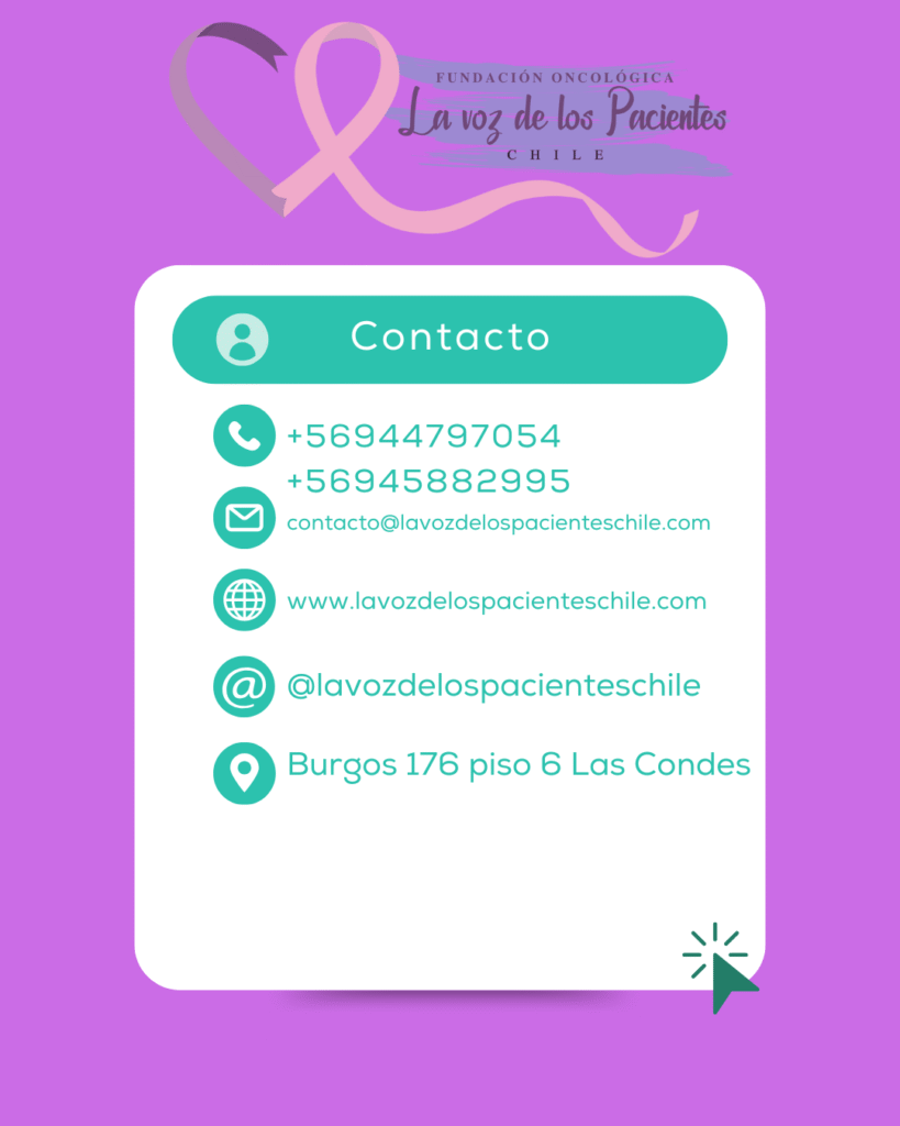 En la Fundación Oncológica La Voz de los Pacientes – Chile, trabajamos con el compromiso de representar, acompañar y apoyar a las personas que viven con cáncer, así como a sus familias. Nacemos de la necesidad de otorgar una voz activa a los pacientes oncológicos, promoviendo la equidad en el acceso a la atención médica, la educación en salud y el diagnóstico oportuno.