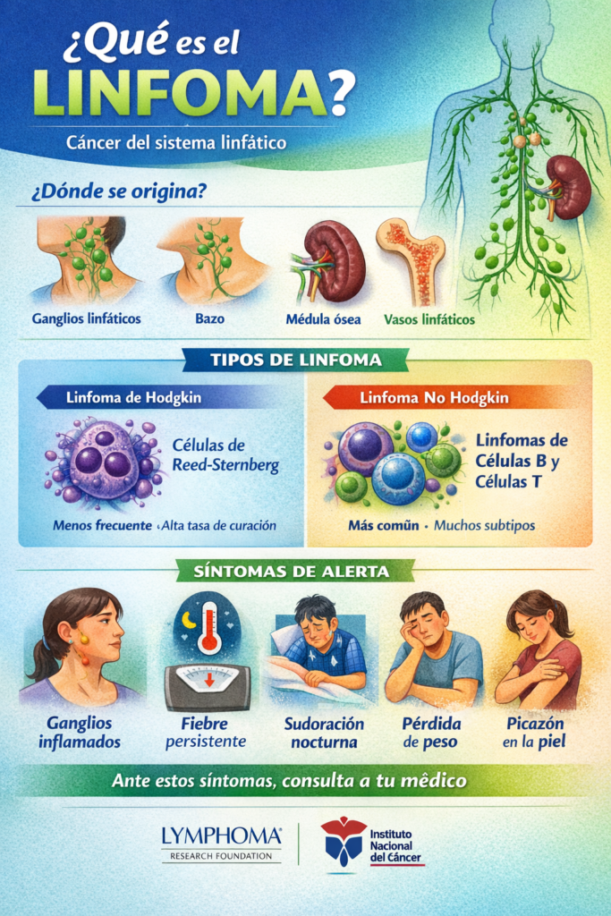 El linfoma es un tipo de cáncer que se origina en el sistema linfático, una red de órganos, ganglios y vasos que forman parte del sistema inmunológico y ayudan al organismo a combatir infecciones.
